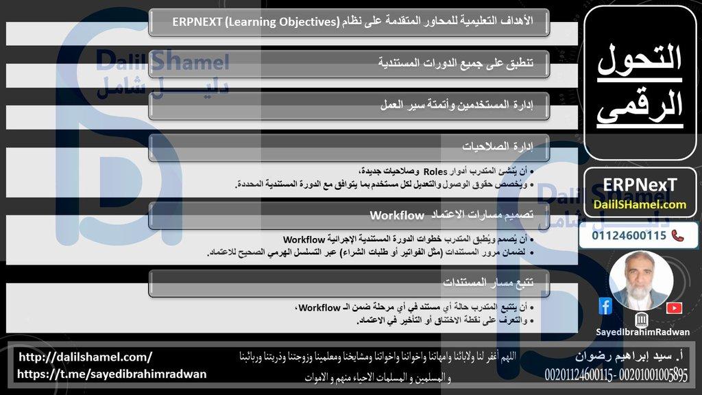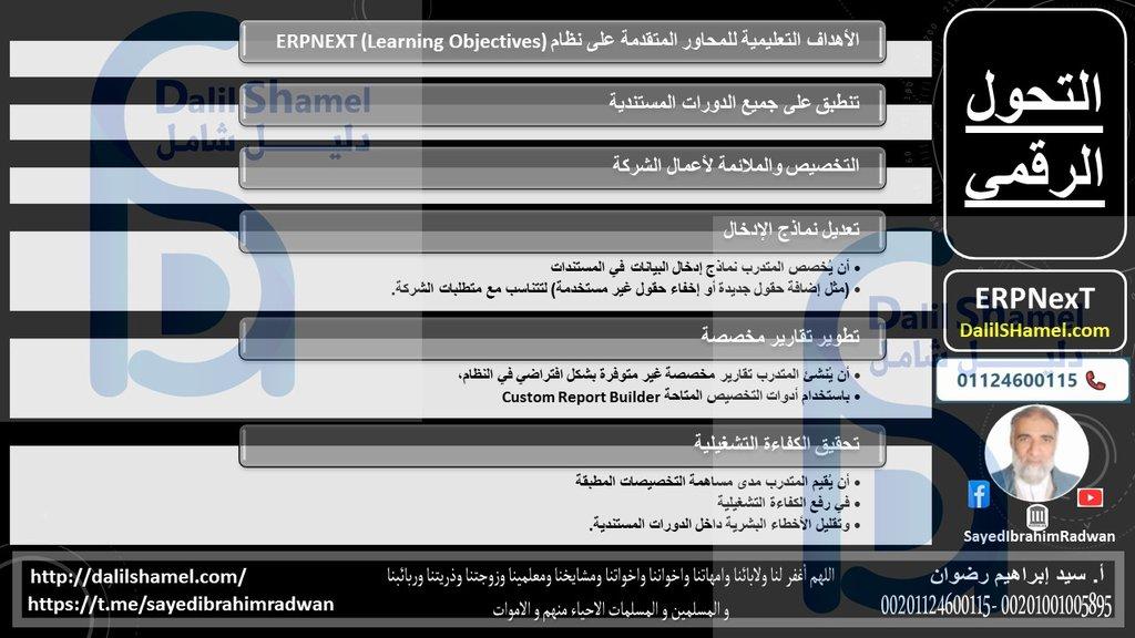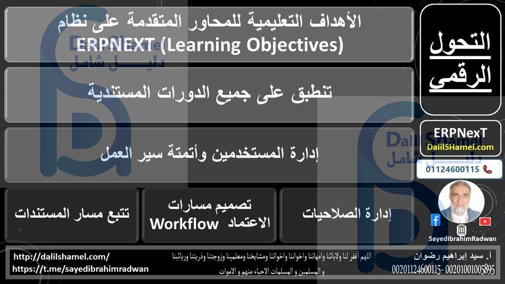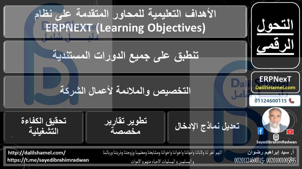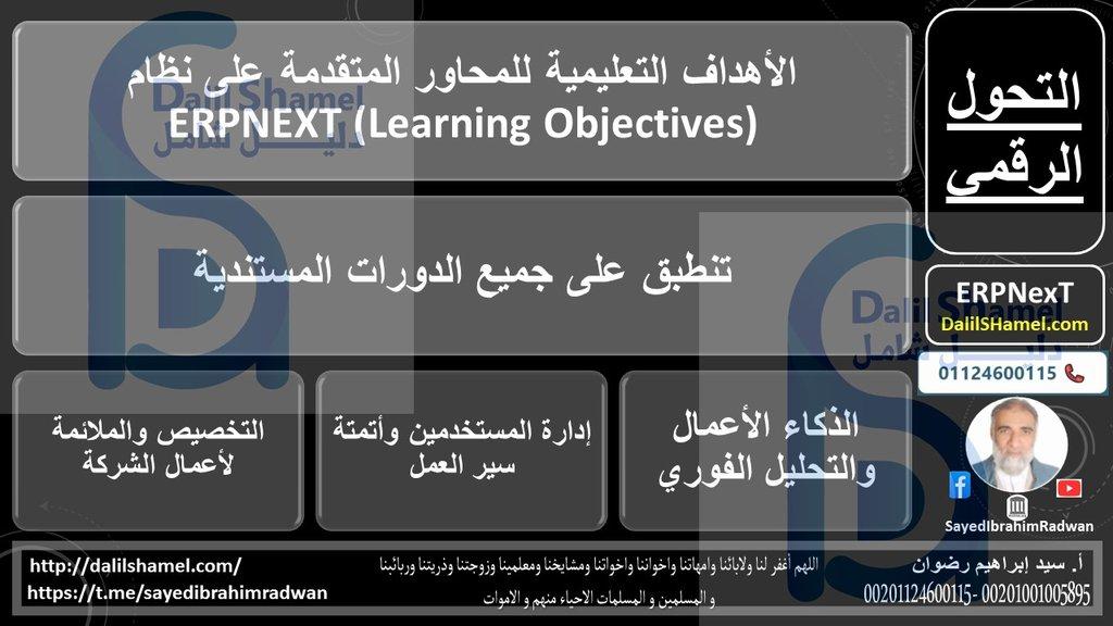 الأهداف التعليمية للمحاور المتقدمة على نظام ERPNEXT