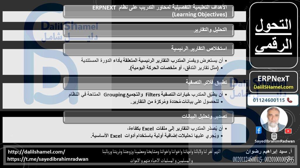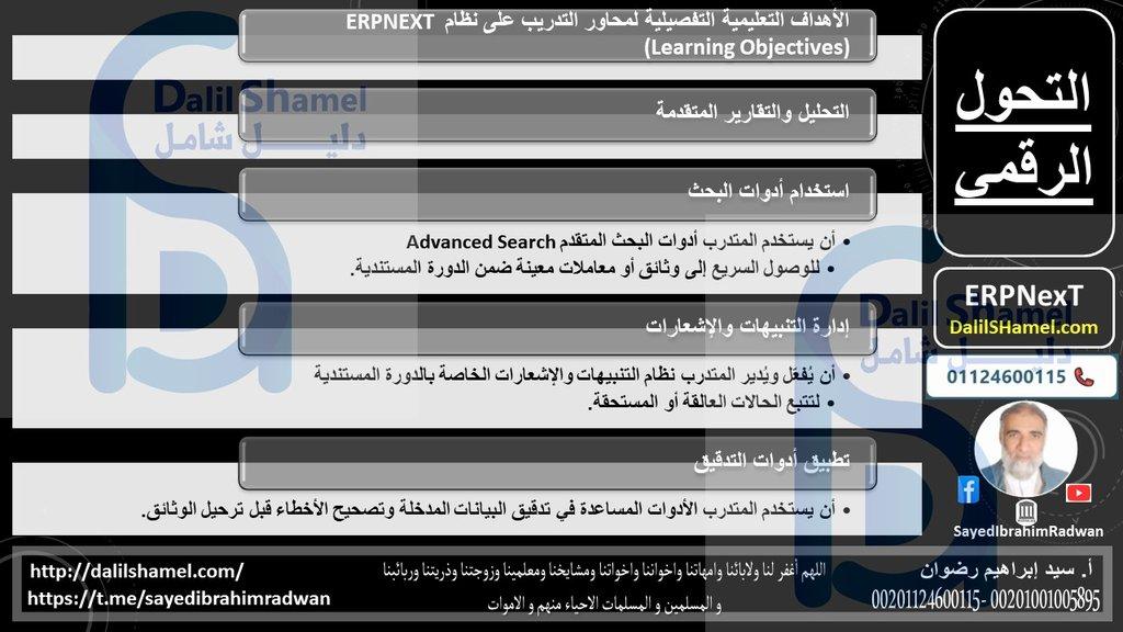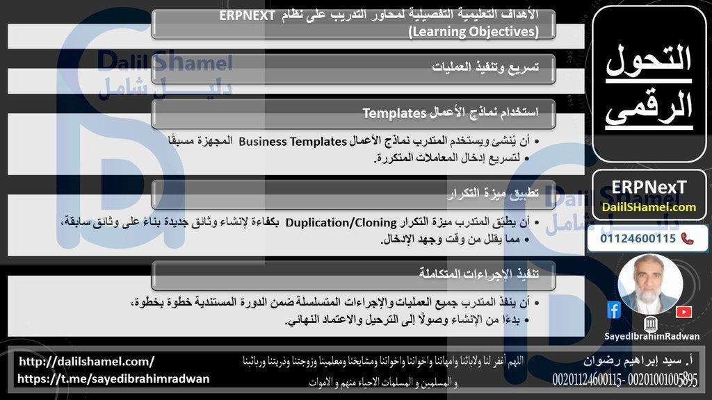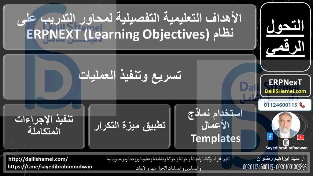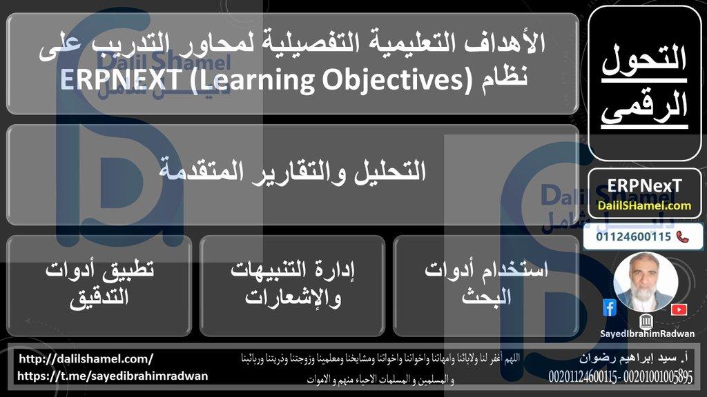 الأهداف التعليمية التفصيلية لمحاور التدريب على نظام ERPNEXT