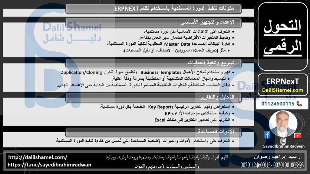 محاور التدريب على نظام ERPNEXT لتنفيذ كل دورة مستندية