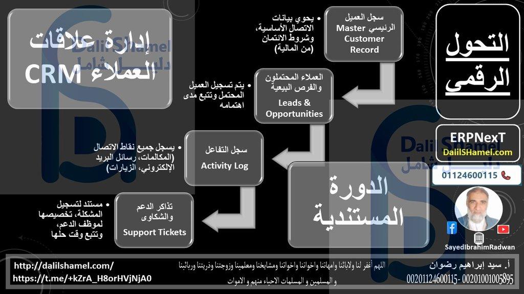 إدارة علاقات العملاء (CRM) تستفيد بشكل حاسم من نظام ERP لضمان أن كل تفاعل مع العميل يتم بناءً على بيانات موحدة ودقيقة من جميع أنحاء المؤسسة (المبيعات، المخزون، المالية، الدعم).